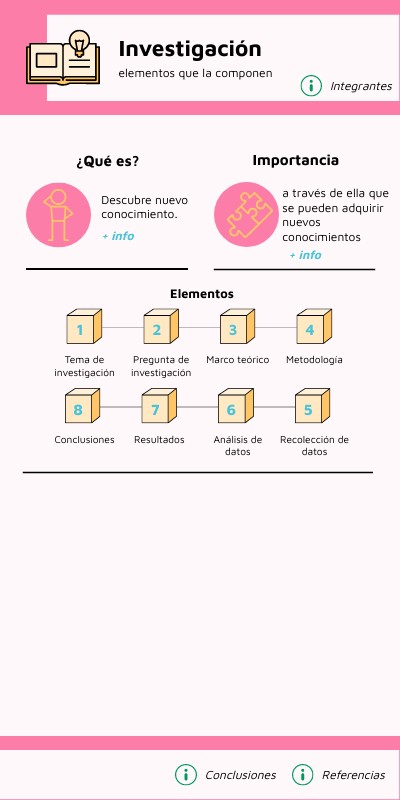 La investigación es un proceso fundamental para la adquisición de conocimiento y el avance en diversos campos. A través de la selección de un tema relevante, la formulación de una pregunta de investigación, la aplicación de una metodología adecuada y el análisis de datos, es posible obtener resultados que contribuyan al conocimiento existente. La investigación nos permite tomar decisiones informadas, resolver problemas y fomentar el desarrollo de nuevas ideas. Al seguir características como el rigor, la ética y la replicabilidad, se asegura la calidad y confiabilidad de los resultados. En resumen, la investigación es un pilar fundamental para el progreso en cualquier campo del conocimientos.