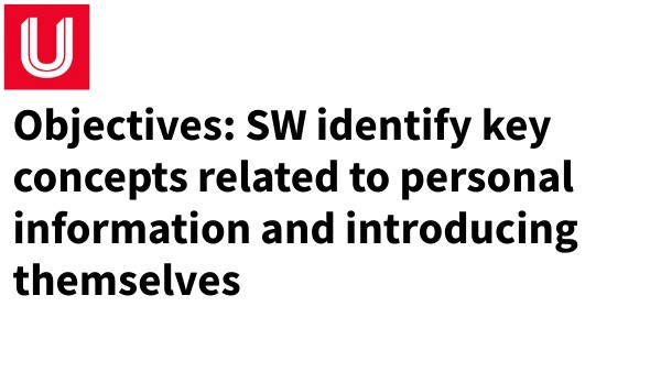 Objectives: SW identify key concepts related to personal information and introducing themselves