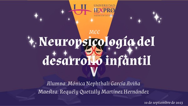 Referencias Bibliográficas Rosseli, M., Matute, E. y Ardila, A. (2010). Capítulo 1. Neuropsicología Infantil: historia, conceptos y objetivos. Capítulo 2. Desarrollo cognitivo y maduración cerebral. (Rosseli, M. y Matute, E.) En Neuropsicología del desarrollo infantil. (Pp. 3-13 y 15-33.). Manual Moderno.