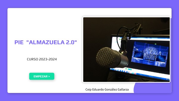 - Cada participante realiza 2 actividades a lo largo del curso. - El periodo de realización de actividades estará comprendido entre el 1 de noviembre y el 1 mayo (fecha tope entrega de actividades). - Las actividades serán de radio, televisión o prensa. Intentar no repetir. - La sala de radio estará disponible los viernes de 12.30h a14h. Para su uso habrá que apunarse en la ficha de "sala Gallarza FM" (teams). - Las actividades realizadas se colgarán en el padlet del PIE. - Las producciones se difundirán en Instagram Almazuela y se escucharán a través de la megafonía del centro (viernes después del recreo). - Los especialistas podrán elaborar las actividades junto con los tutores de su ciclo de referencia. - La actividad final del PIE "Tirar de la lengua" podrá convalidarse con una actividad del PIE "Almazuela".