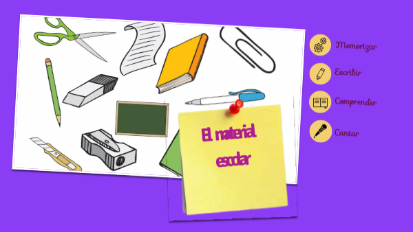 En mi mochila, hay : un cuaderno, un libro, una regla, una calculadora, una agenda y una escuadra. En mi estuche, hay : una goma, un lápiz, un bolígrafo, un corrector, rotuladores, tijeras, un pegamento y un sacapuntas. En la caja de cartón, hay los otros objetos.