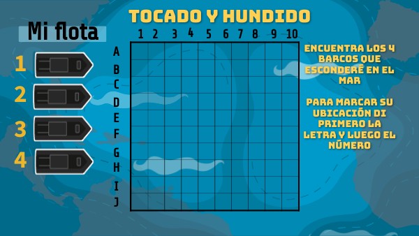 encuentra los 4 barcos que esconderé en el mar para marcar su ubicación di primero la letra y luego el número