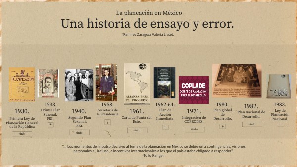 "... Los momentos de impulso decisivo al tema de la planeación en México se debieron a contingencias, visiones personales e , incluso, a incentivos internacionales a los que el país estaba obligado a responder". -Toño Rangel.
