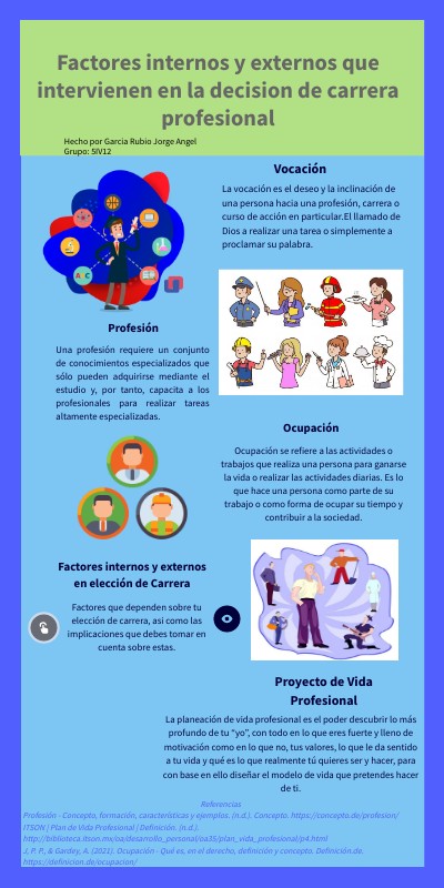 ReferenciasProfesión - Concepto, formación, características y ejemplos. (n.d.). Concepto. https://concepto.de/profesion/ITSON | Plan de Vida Profesional | Definición. (n.d.). http://biblioteca.itson.mx/oa/desarrollo_personal/oa35/plan_vida_profesional/p4.html J, P. P., & Gardey, A. (2021). Ocupación - Qué es, en el derecho, definición y concepto. Definición.de. https://definicion.de/ocupacion/
