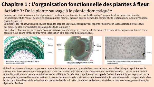 Nous allons observer au microscope la coupe transversale d'une tige et d'une feuille de lierre, et, à l'aide de la disposition, forme... des cellules, nous allons tenter de trouver la localisation et la présence de ces vaisseaux.