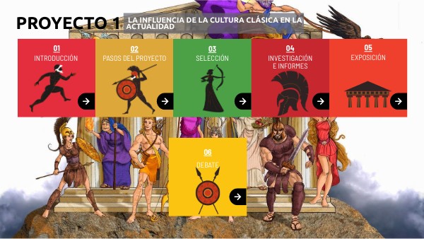 Objetivo del proyecto: El objetivo principal de este proyecto es que los estudiantes investiguen y comprendan cómo la cultura griega y romana ha dejado una huella duradera en la sociedad y la cultura contemporáneas. Duración del proyecto: Este proyecto se realizará a lo largo de la primera evaluación.