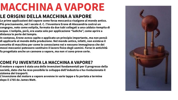 Il motore a vapore è stata una delle invenzioni fondamentali per il progresso della società, dato che ha reso possibile lo sviluppo dell’industria e ha rivoluzionato il sistema dei trasporti.