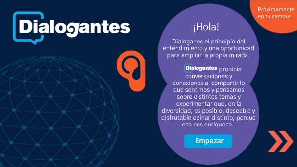 Dialogar es el principio del entendimiento y una oportunidad para ampliar la propia mirada. propicia conversaciones y conexiones al compartir loque sentimos y pensamossobre distintos temas y experimentar que, en la diversidad, es posible, deseable y disfrutable opinar distinto, porque eso nos enriquece.