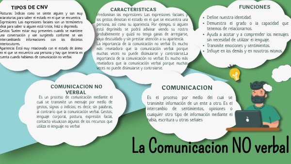 Predominan las expresiones: Las expresiones faciales y los gestos denotan el estado en el que se encuentra una persona, así como su apariencia. Por ejemplo, si alguien está deprimido se podrá adivinar viendo su rostro probablemente y quizá no tenga ganas de arreglarse, vaya descuidado y sin prestar atención a su apariencia. La importancia de la comunicación no verbal: Es mucho más reveladora que la comunicación verbal porque muchas veces no puede disimularse y controlarse.La importancia de la comunicación no verbal: Es mucho más reveladora que la comunicación verbal porque muchas veces no puede disimularse y controlarse.