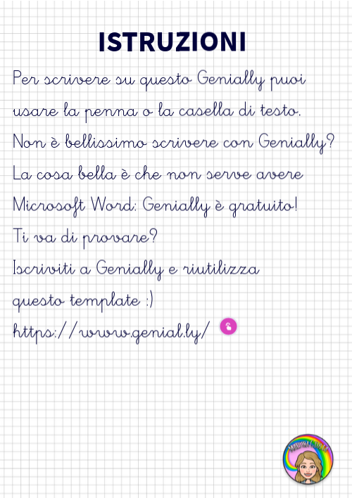 Per scrivere su questo Genially puoi usare la penna o la casella di testo. Non è bellissimo scrivere con Genially? La cosa bella è che non serve avere Microsoft Word: Genially è gratuito! Ti va di provare? Iscriviti a Genially e riutilizza questo template :) https://www.genial.ly/