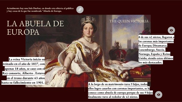 Actualmente hay una Sala Durbar, en donde esta abierta al público y hay cosas de la que fue nombrada "Abuela de Europa.