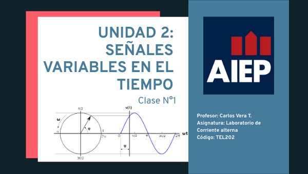 2.1.-Caracteriza señal variable en el tiempo, de tipo monofásica y trifásica, considerando ambientes residenciales e industriales. 2.2.-Calcula valores de voltaje, corriente y potencia eléctrica en circuito de corriente alterna, considerando instrumento de medición. 2.3.-Calcula valores peak y valor efectivo en corriente alterna, considerando instrumento de medición. 2.4.-Determina valores de frecuencia, amplitud y período en corriente alterna.