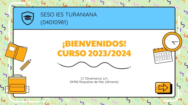 Inicio del curso: 15 de septiembre de 2023. 1º ESO: 11:30 horas. 2º ESO: 12:30 horas.