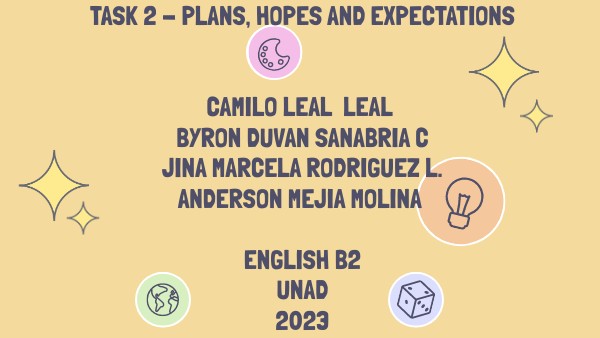 Task 2 - Plans, Hopes and Expectations Camilo Leal Leal BYRON DUVAN SANABRIA C Jina Marcela Rodriguez l. Anderson Mejia Molina English B2 UNAD 2023