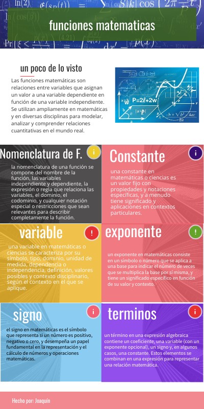 Las funciones matemáticas son relaciones entre variables que asignan un valor a una variable dependiente en función de una variable independiente. Se utilizan ampliamente en matemáticas y en diversas disciplinas para modelar, analizar y comprender relaciones cuantitativas en el mundo real.