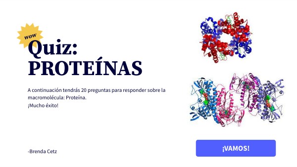A continuación tendrás 20 preguntas para responder sobre la macromolécula: Proteína.¡Mucho éxito! -Brenda Cetz