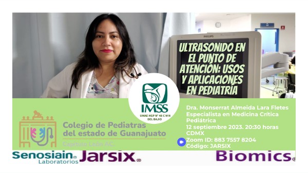 Dra. Monserrat Almeida Lara FletesEspecialista en Medicina Crítica Pediátrica 12 septiembre 2023. 20:30 horas CDMX Zoom ID: 883 7557 8204 Código: JARSIX