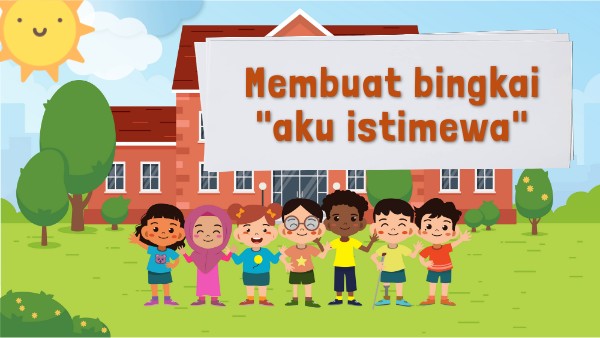 *ajak anak-anak untuk sebutkan keistimewaan mereka (ciri fisik, bagaimana bentuk tubuhmu, jika anak sudah mampu dapat ajak anak berdiskusi tentang karakternya/kelebihan/kekurangan misal, aku istimewa karena aku suka menolong, aku juga sudah jadi anak mandiri, aku bisa main bola, aku bisa menggambar.