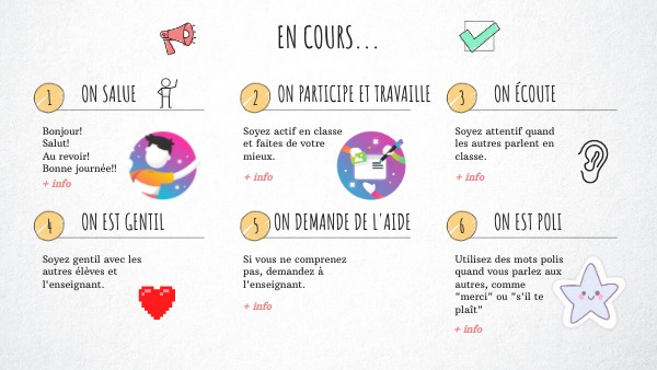 Soyez gentil avec les autres élèves et l'enseignant.
