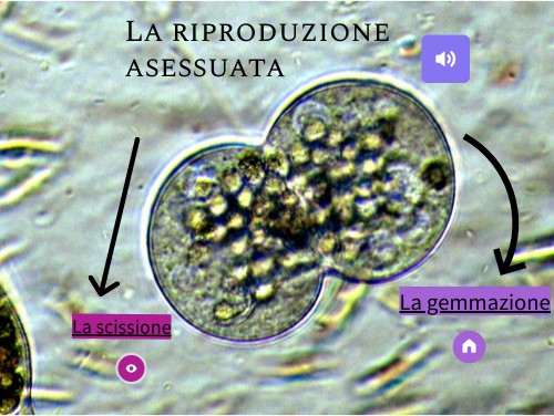 Nella scissione l'individuo "madre" si divide in due o più parti uguali che quando saranno cresciute saranno indipendenti e uguali al genitore. Esistono due tipi di scissione trasversale e longitudinale: