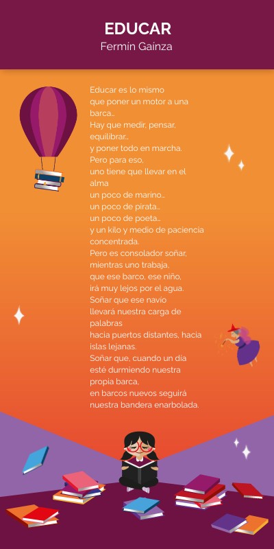 Educar es lo mismo que poner un motor a una barca… Hay que medir, pensar, equilibrar… y poner todo en marcha. Pero para eso, uno tiene que llevar en el alma un poco de marino… un poco de pirata… un poco de poeta… y un kilo y medio de paciencia concentrada. Pero es consolador soñar, mientras uno trabaja, que ese barco, ese niño, irá muy lejos por el agua. Soñar que ese navío llevará nuestra carga de palabras hacia puertos distantes, hacia islas lejanas. Soñar que, cuando un día esté durmiendo nuestra propia barca, en barcos nuevos seguirá nuestra bandera enarbolada.