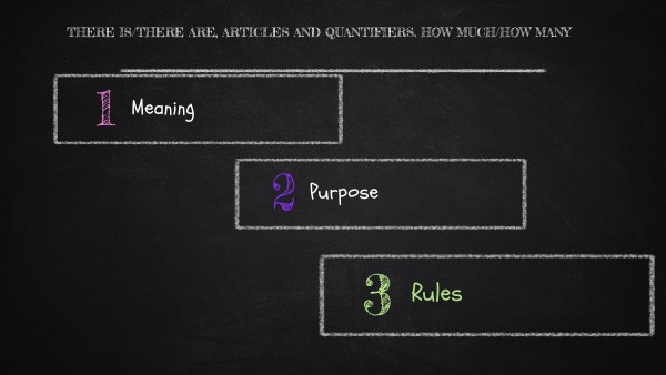 There is/There are, articles and quantifiers, How much/How many