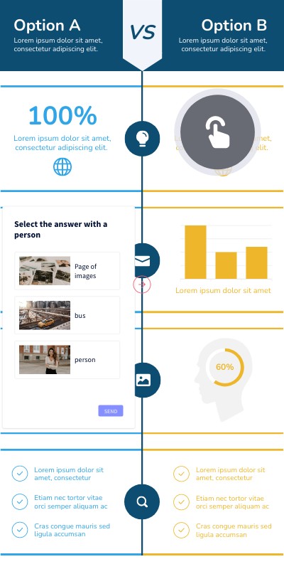 With Genially templates, you can include visual resources to wow your audience. You can also highlight a particular sentence or piece of information so that it sticks in your audience’s minds, or even embed external content to surprise them: Whatever you like! Do you need more reasons to create dynamic content? No problem! 90% of the information we assimilate is received through sight and, what’s more, we retain 42% more information when the content moves.