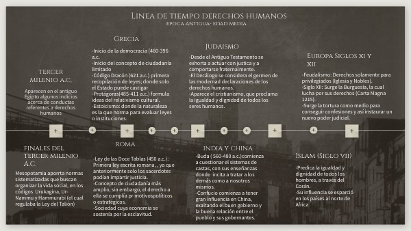 Linea de tiempo que abarca acontecimientos dentro de la historia, con el fin de mostrar cómo es que surgieron los derechos humanos
