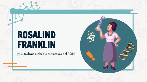 Rosalind Franklin fue una química y cristalógrafa inglesa nacida en 25 de julio de 1920. Aparte de descubrir la forma real en la que se constituye el ADN también hizo asombrosos descubrimientos como la naturaleza del carbón y las investigaciones del elemento infeccioso del virus del mosaico.