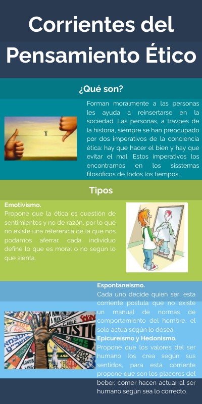 Emotivismo.Propone que la ética es cuestión de sentimientos y no de razón, por lo que no existe una referencia de la que nos podamos aferrar, cada individuo define lo que es moral o no según lo que sienta.