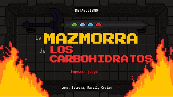 La leyenda cuenta que un recóndito reino forjó una espada que junto al poder de las Gemas Elementales y conocimiento de carbohidratos podría derrotar a cualquier mal. Reúne las gemas para completar el arma definitiva y vence al examen de metabolismo que se esconde en la mazmorra.