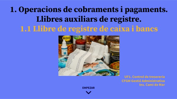 1. Operacions de cobraments i pagaments. Llibres auxiliars de registre.1.1 Llibre de registre de caixa i bancs