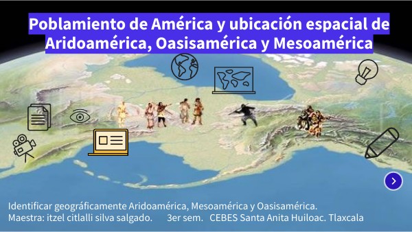 Identificar geográficamente Aridoamérica, Mesoamérica y Oasisamérica.Maestra: itzel citlalli silva salgado. 3er sem. CEBES Santa Anita Huiloac. Tlaxcala