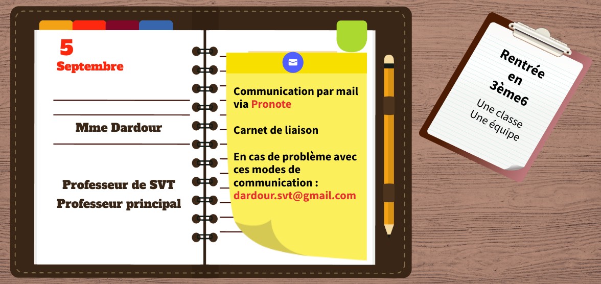 Communication par mail via Pronote Carnet de liaison En cas de problème avec ces modes de communication : dardour.svt@gmail.com