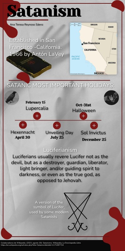Colaboradores de Wikipedia. (2023, agosto 19). Satanismo. Wikipedia, La Enciclopedia Libre. https://en.wikipedia.org/w/index.php?title=Satanism&oldid=1171087724