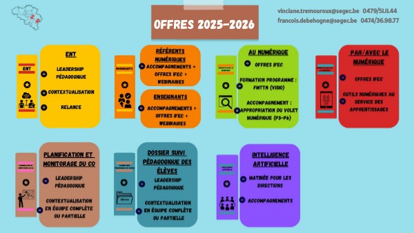 Nous vous proposons de contextualiser l’une ou l’autre application de votre ENT afin d’en dégager les plus-values dans vos pratiques professionnelles et/ou pédagogiques. Nous prendrons le temps d’alterner présentation, assimilation et temps de manipulation.