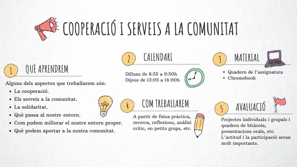 Projectes individuals i grupals i quadern de bitàcola, presentacions orals, etc. L'actitud i la participació seran molt importants.