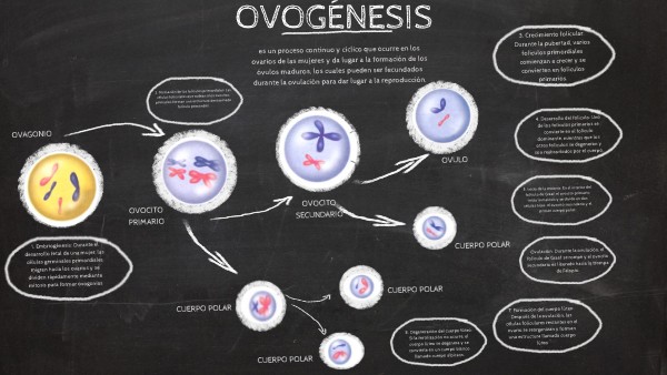 1. Embriogénesis: Durante el desarrollo fetal de una mujer, las células germinales primordiales migran hacia los ovarios y se dividen rápidamente mediante mitosis para formar ovogonias