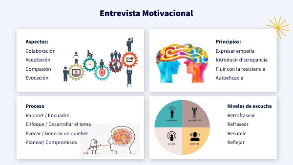 Principios: Expresar empatía Introducir discrepancia Fluir con la resistencia Autoeficacia