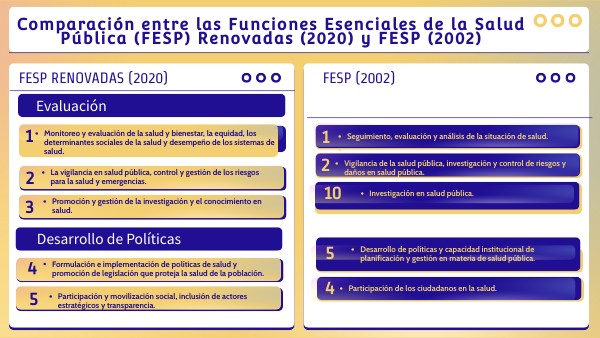 Comparación entre las Funciones Esenciales de la Salud Pública (FESP) Renovadas (2020) y FESP (2002)