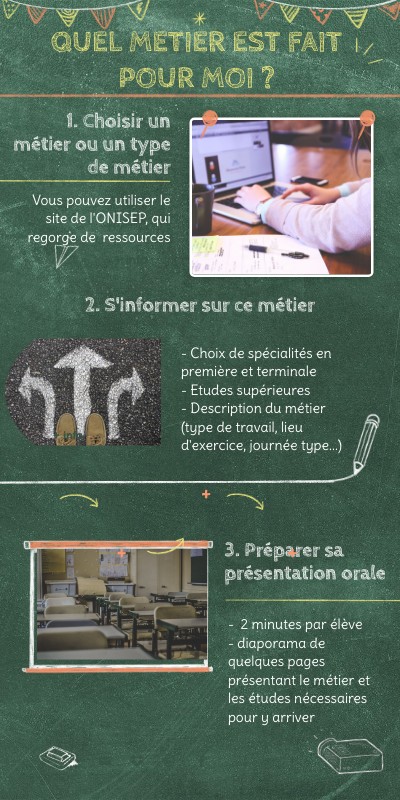 - 2 minutes par élève - diaporama de quelques pages présentant le métier et les études nécessaires pour y arriver