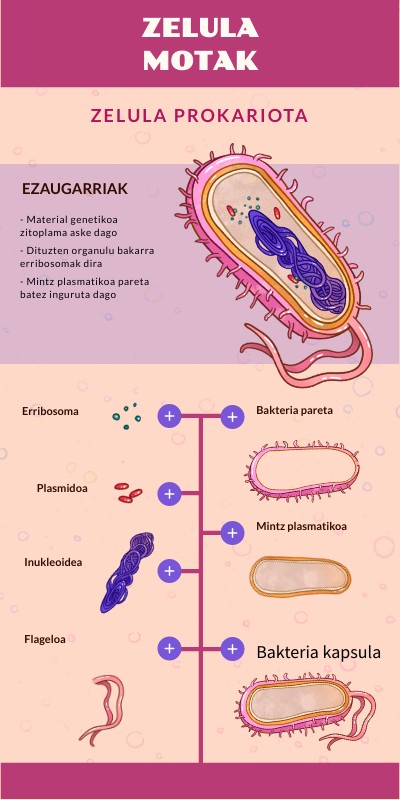 - Material genetikoa zitoplama aske dago - Dituzten organulu bakarra erribosomak dira - Mintz plasmatikoa pareta batez inguruta dago