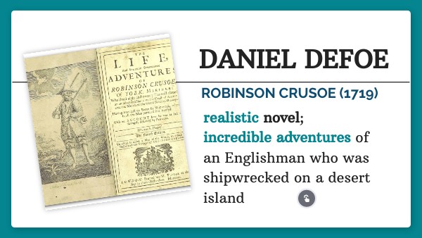 realistic novel;incredible adventures of an Englishman who was shipwrecked on a desert island