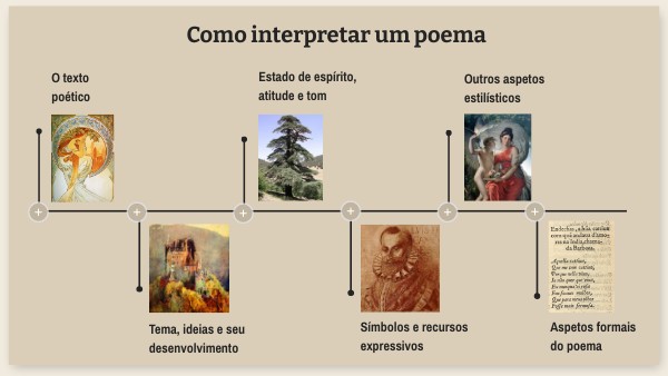Perante um poema, temos de fazer inferências e analisar o sentido das palavras para construirmos linhas de interpretação. É fundamental começar por encontrar a ideia central do poema (“unidade”) e os sentidos a ela associados. Depois avançamos para a interpretação do modo como essas ideias são desenvolvidas e tratadas nas diferen-tes partes do poema, nos aspetos estilísticos, etc.