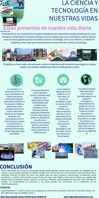 Con el desarrollo de la ciencia y tecnología hemos tenido grandes avances que se pueden ver tangibles por el interés y conocimiento humanos, el método científico por el desarrollo del conocimiento en favor del desarrollo y bienestar humano, al hacer las cosas más fáciles para los seres humanos, favoreciendo el desarrollo social económico y cultural. Al desarrollar nuevas formas de hacer más rápido y funcional el trabajo nos quedan más tiempo para la expansión social, cultural y económica, teniendo oportunidades de descanso, hacer eficiente el trabajo, así desarrollando la economía, y las áreas sociales de convivencia con el desarrollo de las telecomunicaciones.