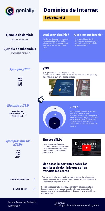 gTDL (Dominio Genérico de primer nivel) Es una extensión internacional la cual no esta vinculada a ningún pais y hace referencia a un tema o uso particular.