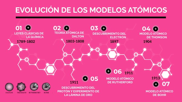 Un resumen de la evolución de los modelos atómicos a lo largo de la historia.