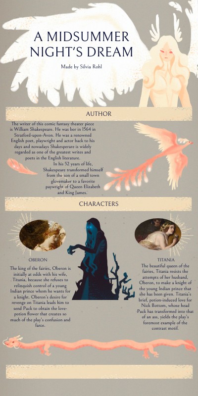 I liked in particular the character od Titania because she represent an indipendent strong female figure in the plot: she loves ardently whoever she wants and she has the power of going against her husband will and to have her own thoughts and moral values. I also really appreciated the love quarrels and triangles between Hermia, Helena, Lysander and Demetrius, admiring also the strenght they have to follow their hearts truly and deeply, also by comparing the loss of their love as more painful than the death. In conclusion, I highly reccomend this story to everyone who wants to have a big laugh, without missing out also love and intringues.