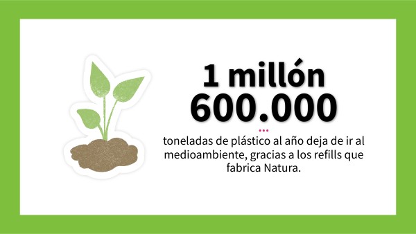 ... toneladas de plástico al año deja de ir al medioambiente, gracias a los refills que fabrica Natura.