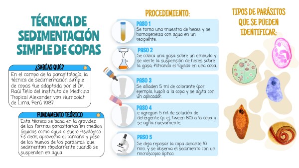 En el campo de la parasitología, la técnica de sedimentación simple de copas fue adaptada por el Dr. Raúl Tello del Instituto de Medicina Tropical Alexander von Humboldt de Lima, Perú 1987.